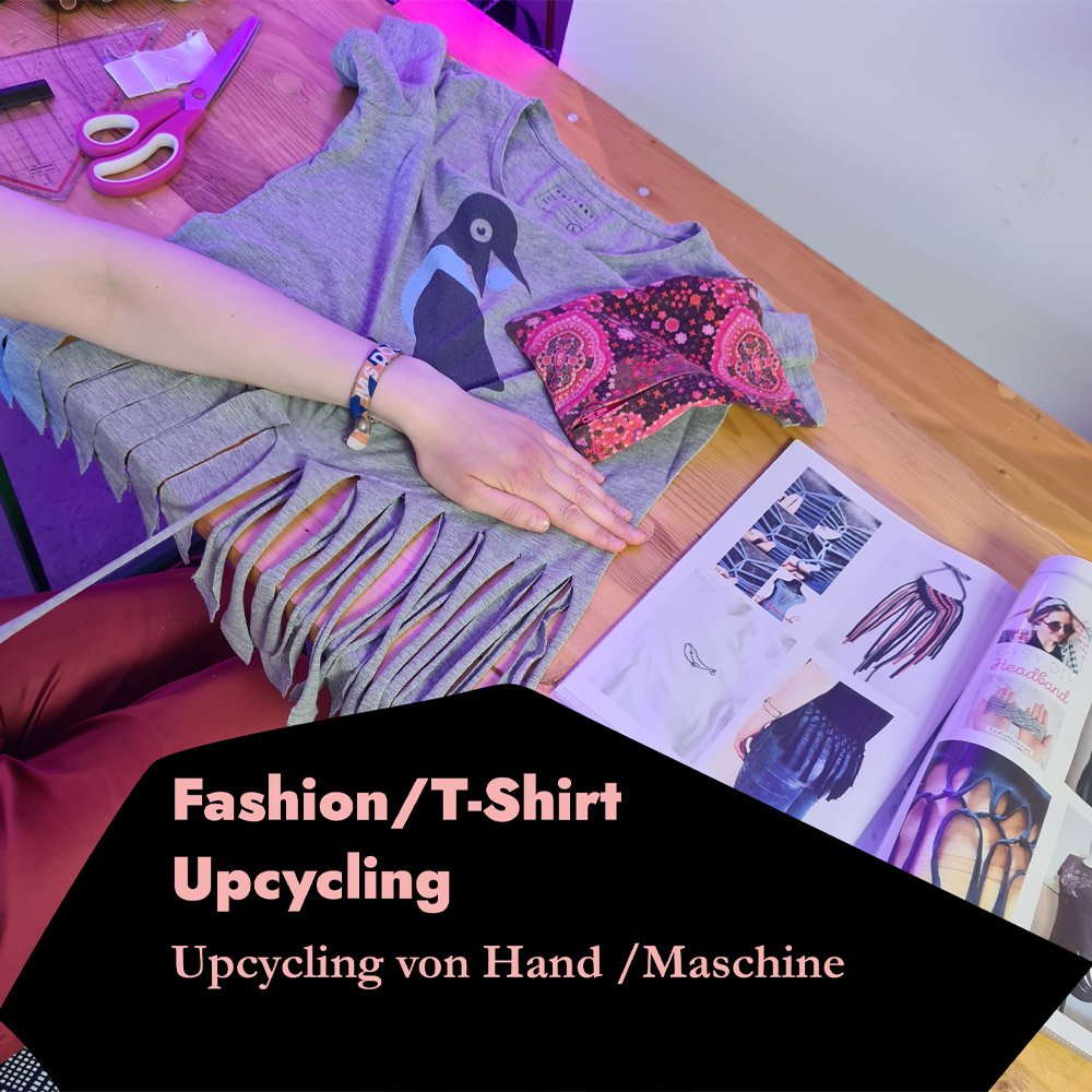 In diesen Upcycling-Workshops zeigt dir Modedesignerin Alexandra verschiedene Möglichkeiten, wie du dein Kleidungsstück upcyceln kannt. Du wirst Designer*in deiner eigenen Mode und verleihst deinem T-Shirt einen besonderen und individuellen Style. Egal ob zur Einkaufstasche, zum Schlüsselanhänger oder schicken Makramee-Top. Bringe deine Kleidung mit, oder suche dir ein Shirt aus dem Bestand aus. Nebenbei lernst du noch was Upcycling mit Slow Fashion zu tun hat. Material und Werkzeug wird gestellt.